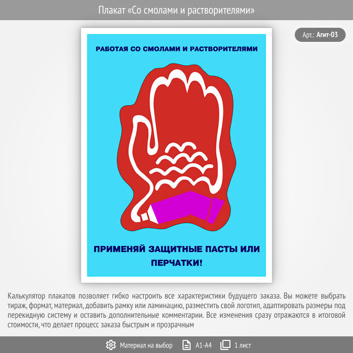 Плакат «Со смолами и растворителями» (Агит-03, 1 лист) в Нижнекамске купить