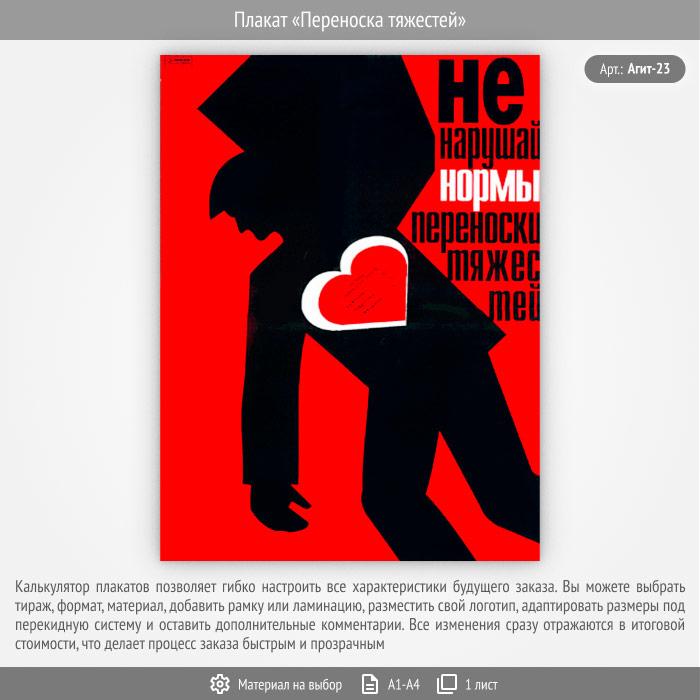 Плакат «Переноска тяжестей» (Агит-23, 1 лист) в Нижнекамске купить
