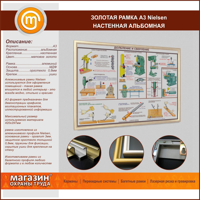 Багетная настенная рамка «Nielsen» А3 формата, альбомная, матовое золото в Нижнекамске купить