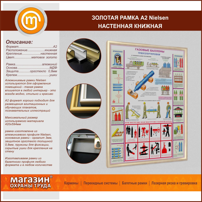 Багетная настенная рамка «Nielsen» А2 формата, книжная, матовое золото в Нижнекамске купить