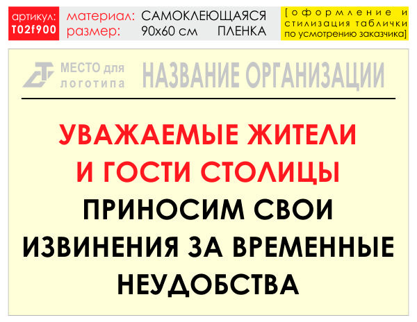 Баннер «Извинения», T02 (самоклеящаяся плёнка, 90х60 см) в Нижнекамске купить