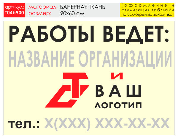 Баннер «Работы ведет», T04 (баннерная ткань, 90х60 см) в Нижнекамске купить