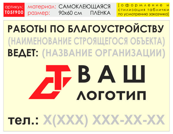 Баннер «Работы по благоустройству», T05 (самоклеящаяся плёнка, 90х60 см) в Нижнекамске купить