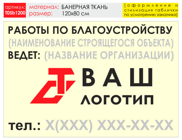Баннер «Работы по благоустройству», T05 (баннерная ткань, 120х90 см) в Нижнекамске купить