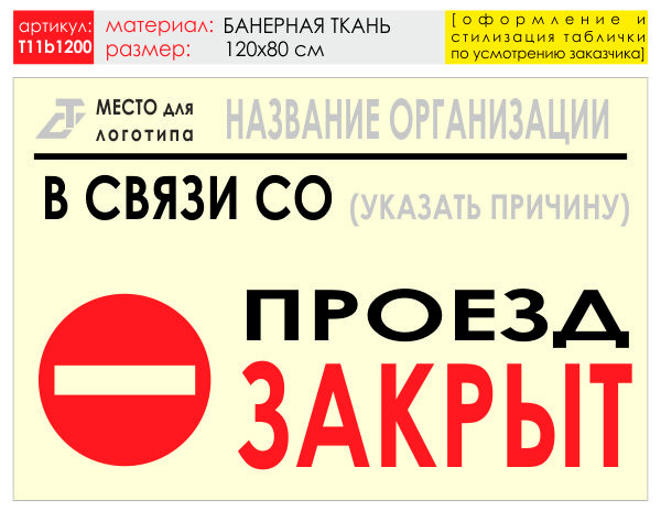 Баннер «Проезд закрыт», T11 (баннерная ткань, 120х90 см) в Нижнекамске купить