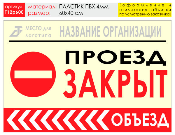 Баннер «Объезд слева», T12 (пластик 4 мм, 60х40 см) в Нижнекамске купить