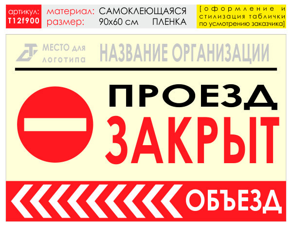 Баннер «Объезд слева», T12 (самоклеящаяся плёнка, 90х60 см) в Нижнекамске купить