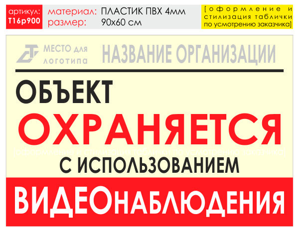Баннер «Объект охраняется», T16 (пластик 4 мм, 90х60 см) в Нижнекамске купить