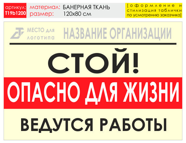 Баннер «Опасно для жизни», T19 (баннерная ткань, 120х90 см) в Нижнекамске купить
