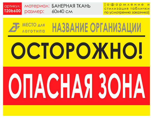 Баннер «Опасная зона», T20 (баннерная ткань, 60х40 см) в Нижнекамске купить