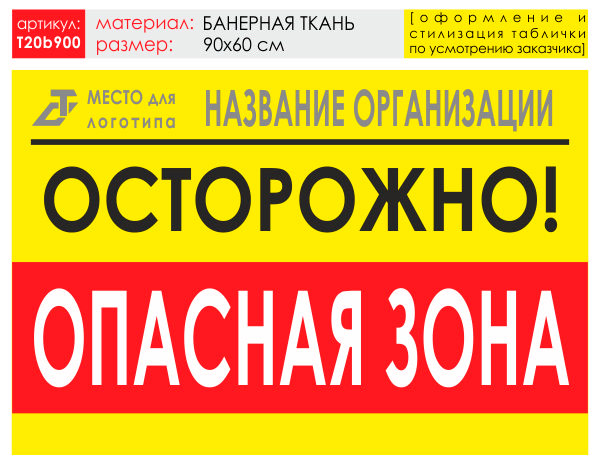 Баннер «Опасная зона», T20 (баннерная ткань, 90х60 см) в Нижнекамске купить