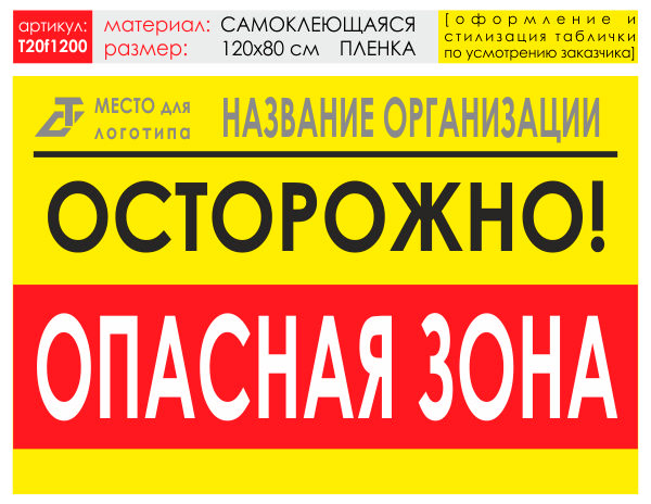 Баннер «Опасная зона», T20 (самоклеящаяся плёнка, 120х90 см) в Нижнекамске купить