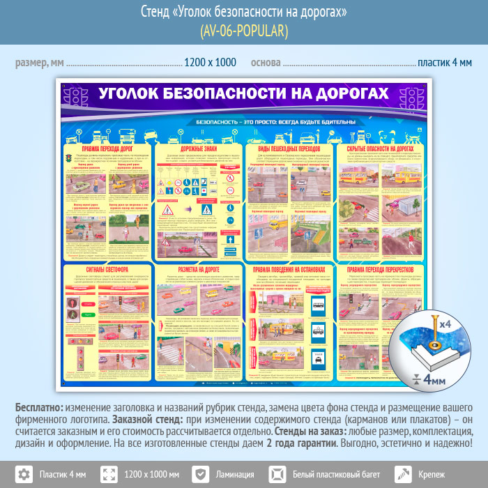 Стенд «Уголок безопасности на дорогах» (AV-06-POPULAR) в Нижнекамске купить