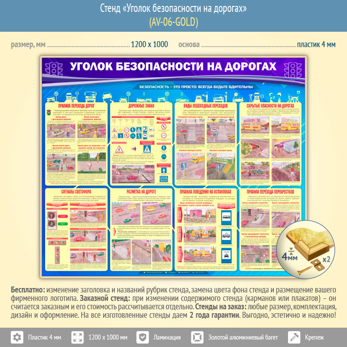 Стенд «Уголок безопасности на дорогах» (AV-06-GOLD) в Нижнекамске купить