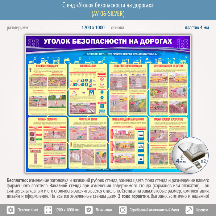 Стенд «Уголок безопасности на дорогах» (AV-06-SILVER) в Нижнекамске купить
