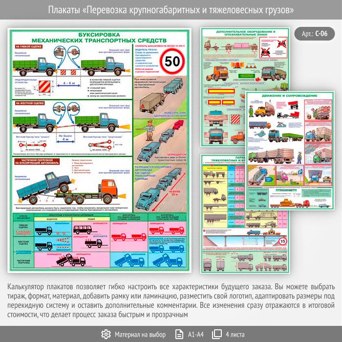 Плакаты «Перевозка крупногабаритных и тяжеловесных грузов» (С-06, 4 листа) в Нижнекамске купить