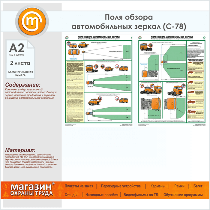 Плакаты «Поля обзора автомобильных зеркал» (С-78, ламинированная бумага, А2, 2 листа) в Нижнекамске купить