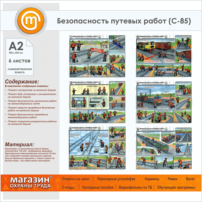 Плакаты «Безопасность путевых работ» (С-85, ламинированная бумага, А2, 6 листов) в Нижнекамске купить