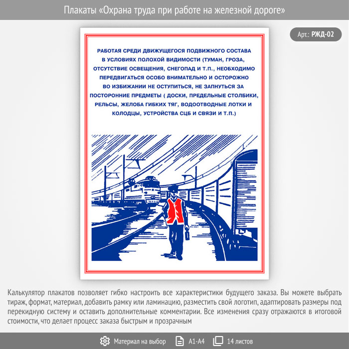 Плакаты «Охрана труда при работе на железной дороге» (РЖД-02, 14 листов) в Нижнекамске купить