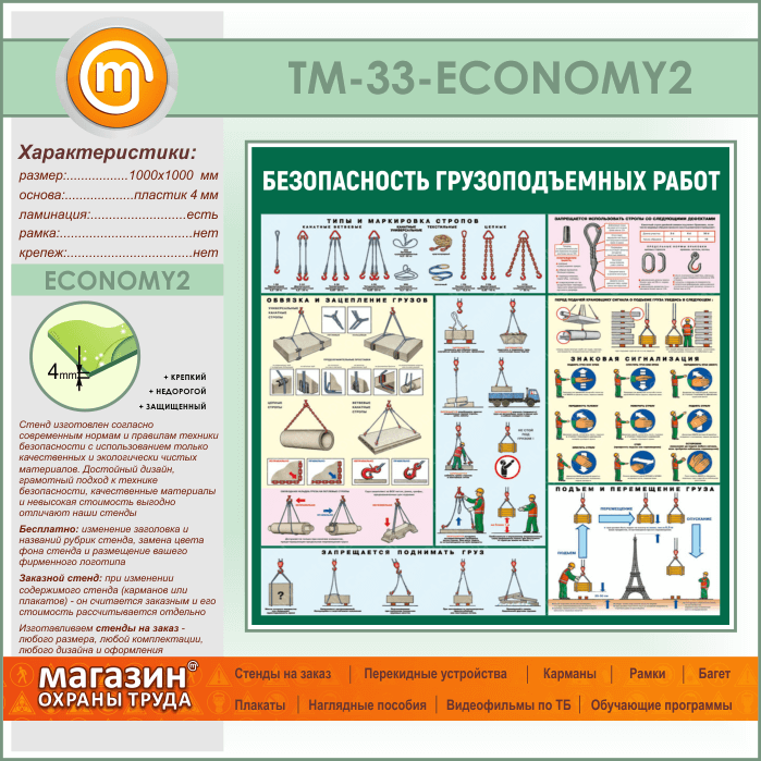 Стенд «Безопасность грузоподъемных работ» (TM-33-ECONOMY2) в Нижнекамске купить