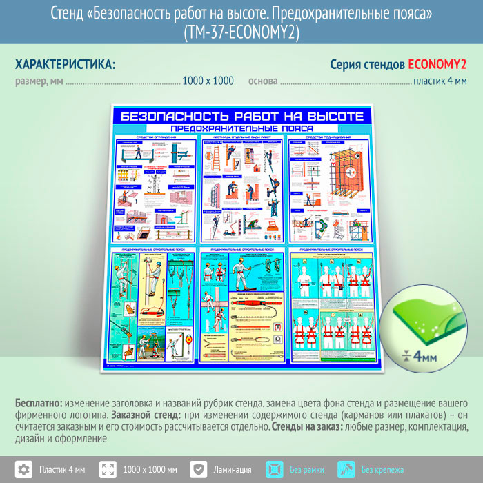 Стенд «Безопасность работ на высоте. Предохранительные пояса» (TM-37-ECONOMY2) в Нижнекамске купить