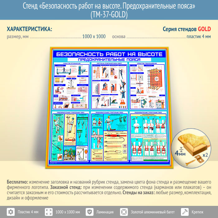 Стенд «Безопасность работ на высоте. Предохранительные пояса» (TM-37-GOLD) в Нижнекамске купить