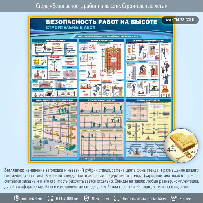 Стенд «Безопасность работ на высоте. Строительные леса» (TM-38-GOLD) в Нижнекамске купить