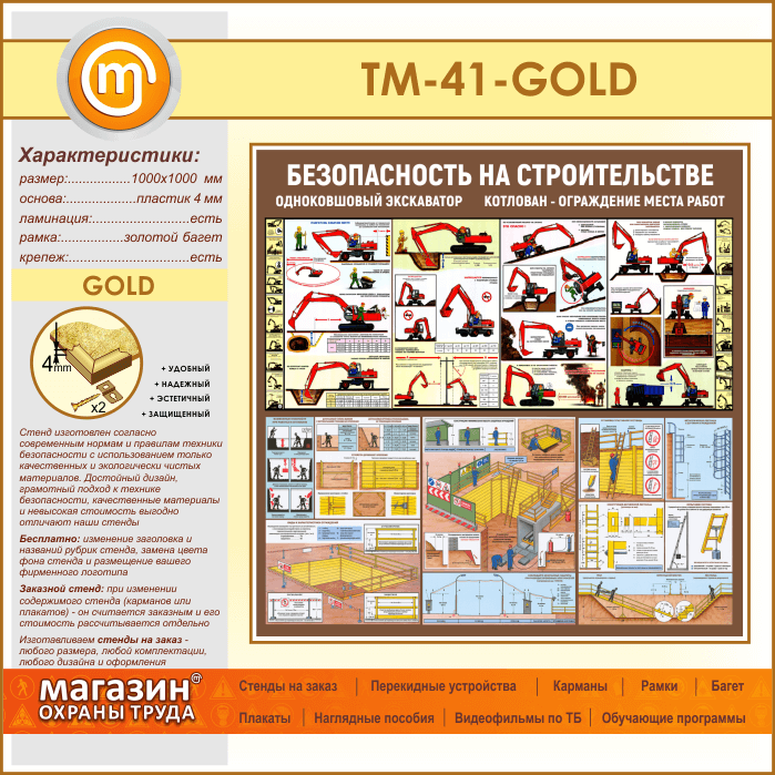 Стенд «Безопасность земляных работ. Экскаватор, котлован» (TM-41-GOLD) в Нижнекамске купить