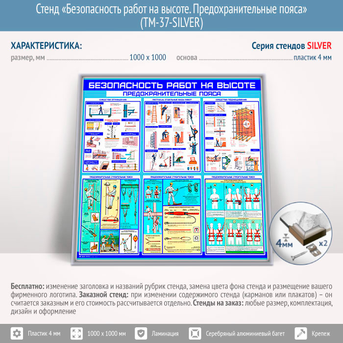 Стенд «Безопасность работ на высоте. Предохранительные пояса» (TM-37-SILVER) в Нижнекамске купить