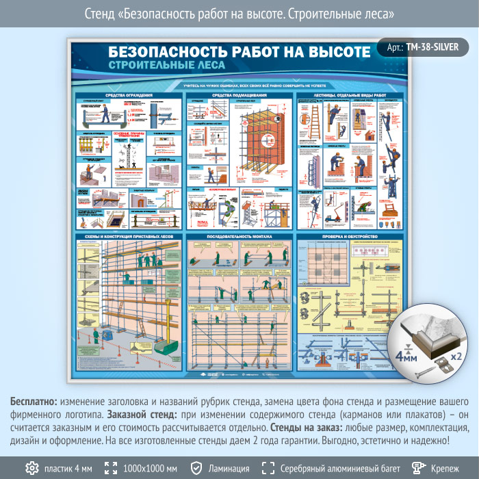 Стенд «Безопасность работ на высоте. Строительные леса» (TM-38-SILVER) в Нижнекамске купить