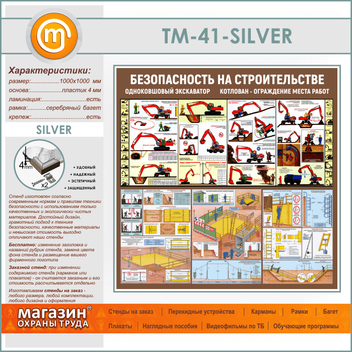Стенд «Безопасность земляных работ. Экскаватор, котлован» (TM-41-SILVER) в Нижнекамске купить