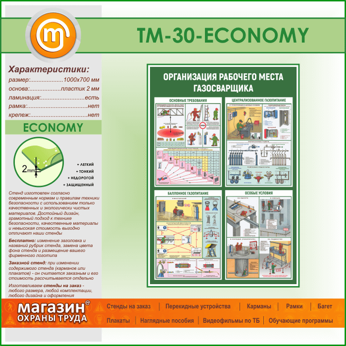 Стенд «Организация рабочего места газосварщика» (TM-30-ECONOMY) в Нижнекамске купить