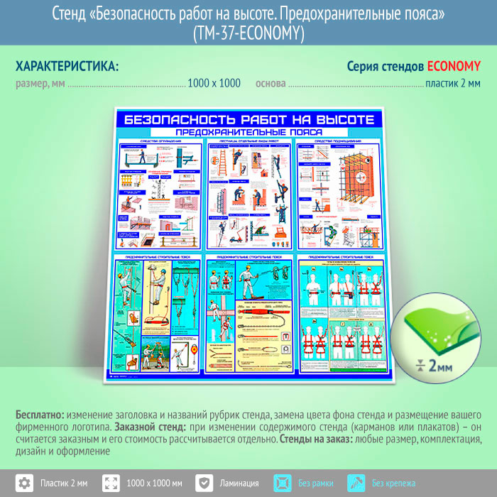 Стенд «Безопасность работ на высоте. Предохранительные пояса» (TM-37-ECONOMY) в Нижнекамске купить