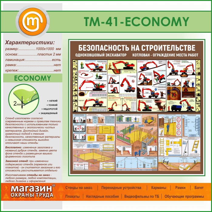 Стенд «Безопасность земляных работ. Экскаватор, котлован» (TM-41-ECONOMY) в Нижнекамске купить