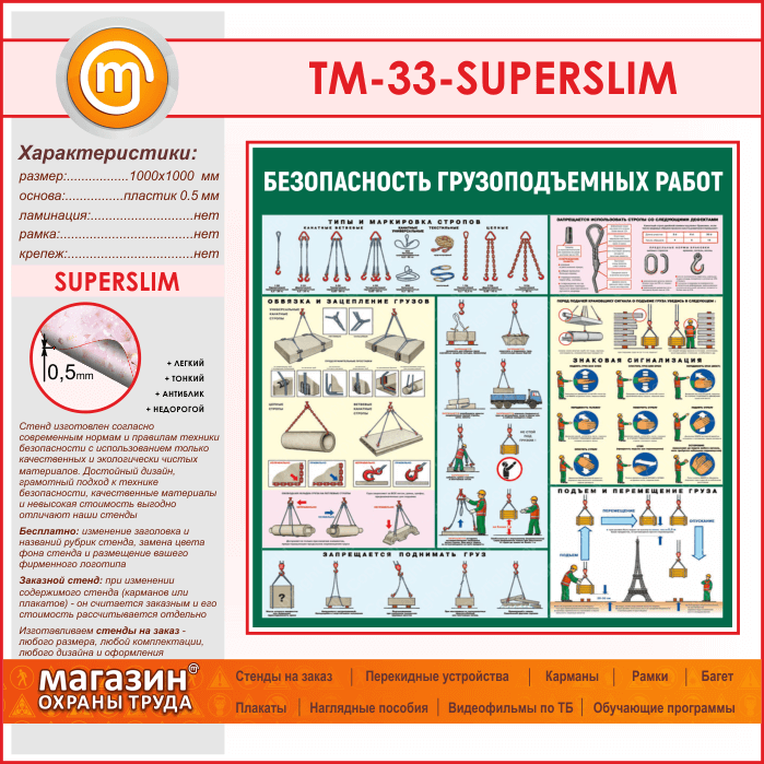 Стенд «Безопасность грузоподъемных работ» (TM-33-SUPERSLIM) в Нижнекамске купить
