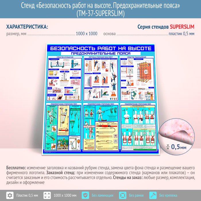 Стенд «Безопасность работ на высоте. Предохранительные пояса» (TM-37-SUPERSLIM) в Нижнекамске купить
