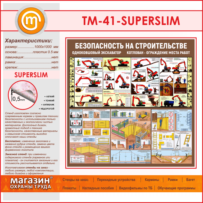 Стенд «Безопасность земляных работ. Экскаватор, котлован» (TM-41-SUPERSLIM) в Нижнекамске купить