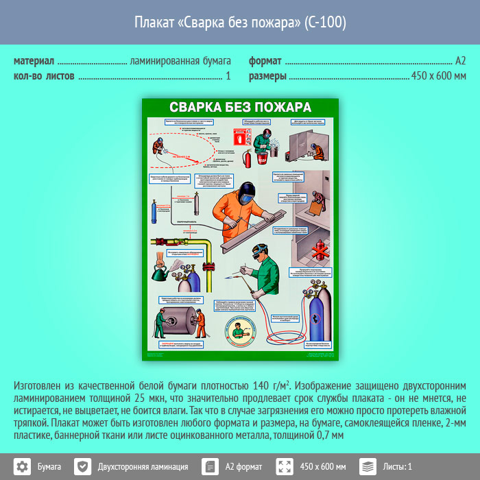 Плакат «Сварка без пожара» (С-100, ламинированная бумага, А2, 1 лист) в Нижнекамске купить