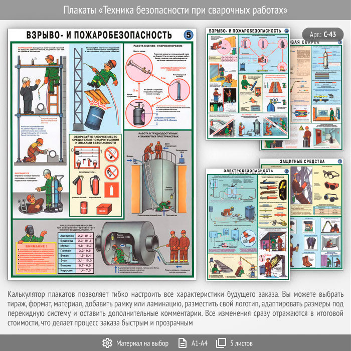 Плакаты «Техника безопасности при сварочных работах» (С-43, 5 листов) в Нижнекамске купить