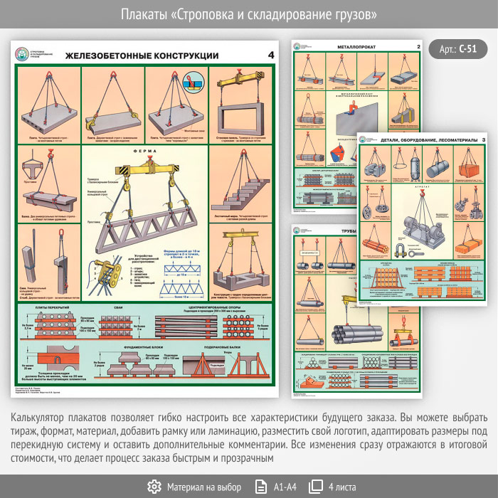 Плакаты «Строповка и складирование грузов» (С-51, 4 листа) в Нижнекамске купить