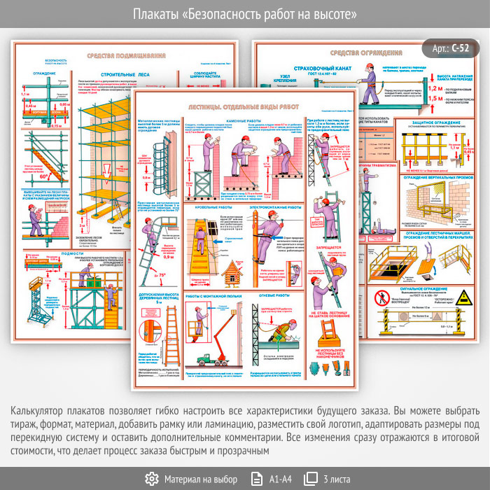 Плакаты «Безопасность работ на высоте» (С-52, 3 листа) в Нижнекамске купить