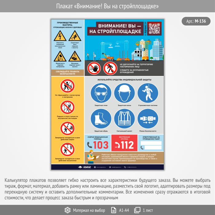 Плакат «Внимание! Вы на стройплощадке» с QR (М-136, 1 лист) в Нижнекамске купить