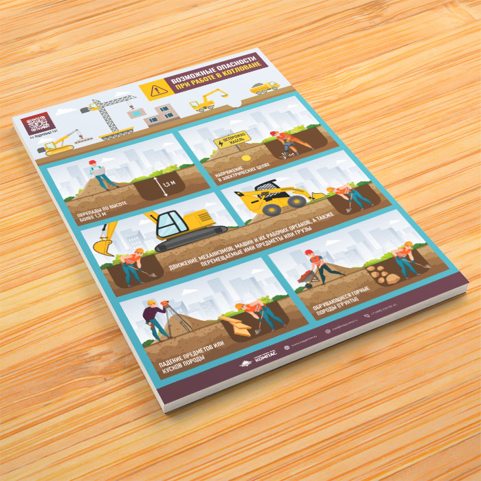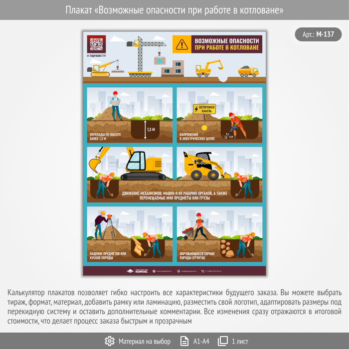 Плакат «Возможные опасности при работе в котловане» с QR (М-137, 1 лист) в Нижнекамске купить