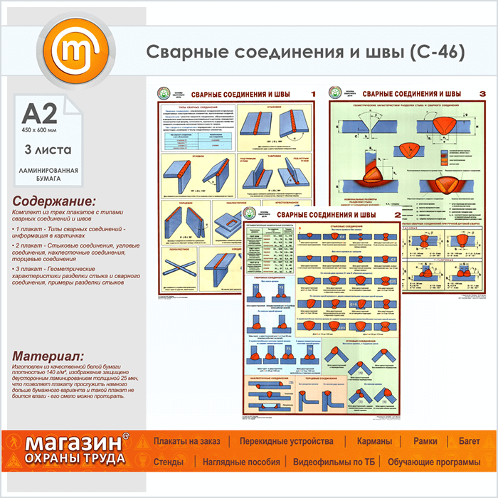 Плакаты «Сварные соединения и швы» (С-46, ламинированная бумага, А2, 3 листа) в Нижнекамске купить