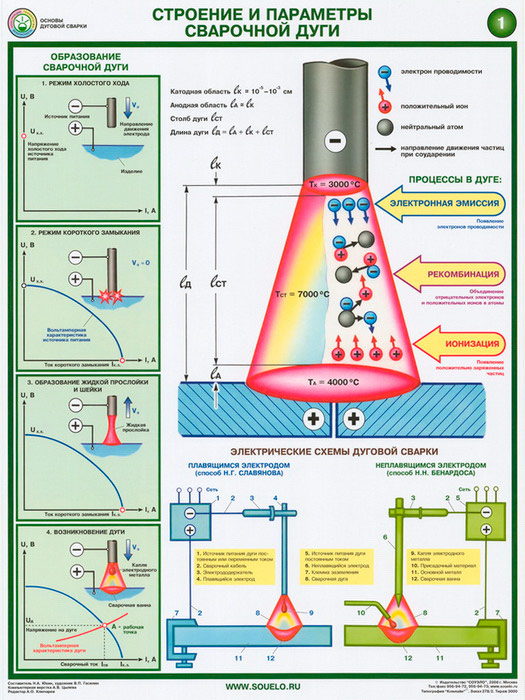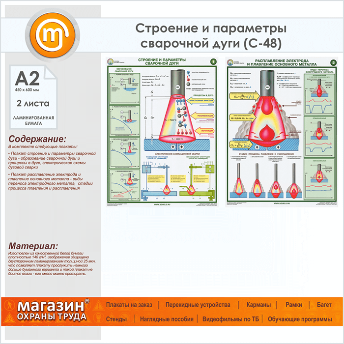Плакаты «Строение и параметры сварочной дуги» (С-48, ламинированная бумага, А2, 2 листа) в Нижнекамске купить