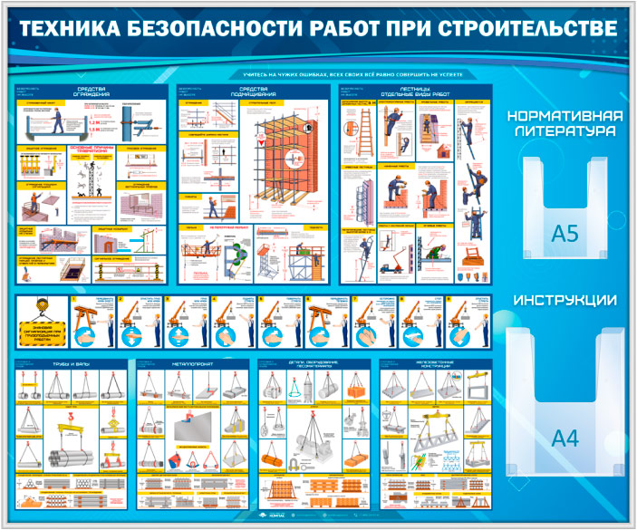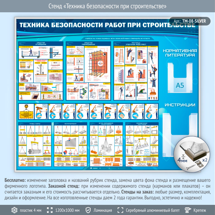 Стенд «Техника безопасности при строительстве» с 2 объемными карманами (TM-08-SILVER) в Нижнекамске купить
