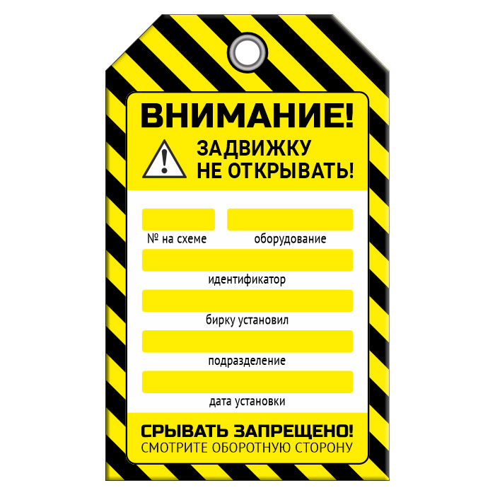 Бирка «ЗАДВИЖКУ НЕ ОТКРЫВАТЬ!» (1 шт., двусторонняя, пластик, 70х115 мм) в Нижнекамске купить