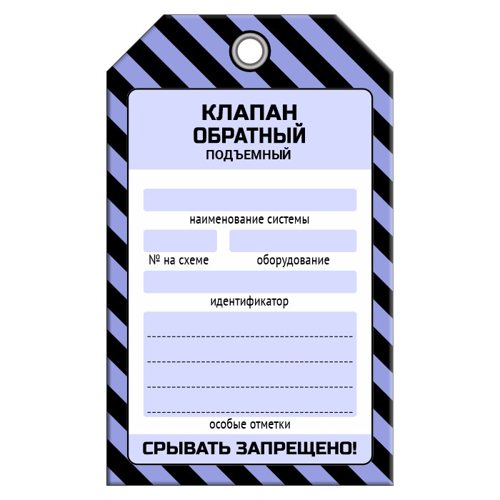 Бирка «КЛАПАН ОБРАТНЫЙ ПОДЪЕМНЫЙ» (1 шт., односторонняя, пластик, 70х115 мм) в Нижнекамске купить