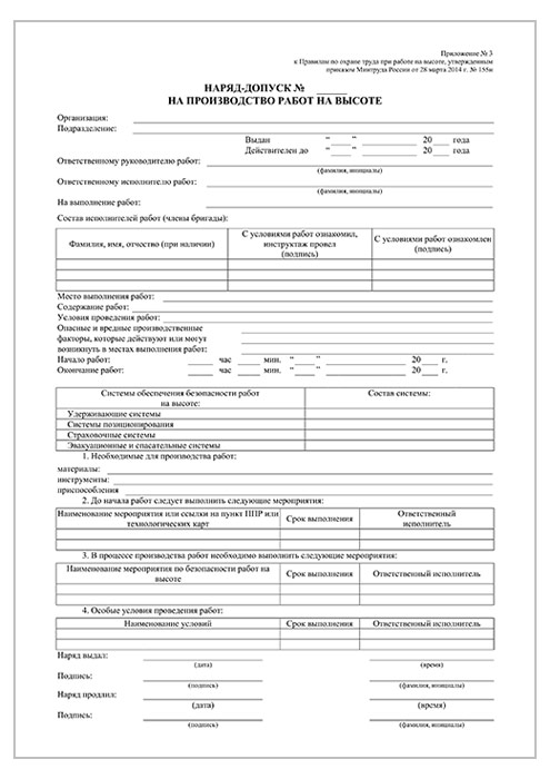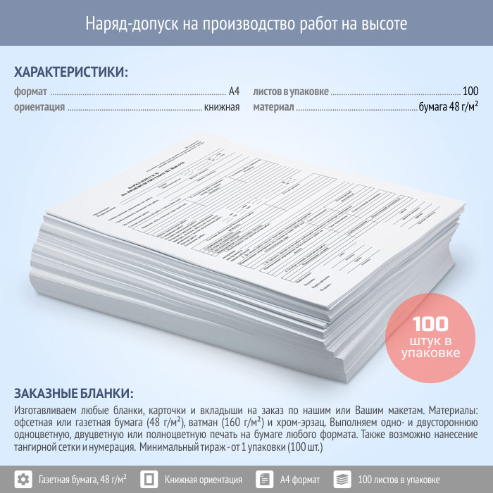 Наряд-допуск на производство работ на высоте (упаковка из 100 штук) в Нижнекамске купить