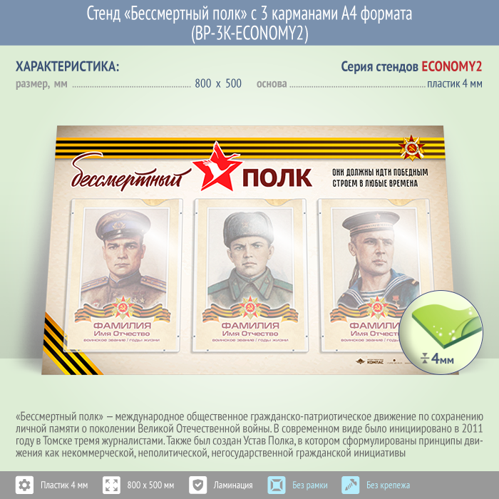 Стенд «Бессмертный полк» с 3 карманами А4 формата (BP-3K-ECONOMY2) в Нижнекамске купить